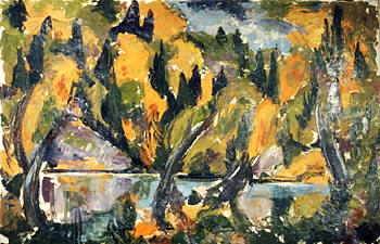 record number: PA0427 title: Untitled (Fall Trees) date: circa 1940 media: oil on canvas dimensions: 19 3/4" x 29 3/4" framed: unstretched signature: none location: P3 notes:
